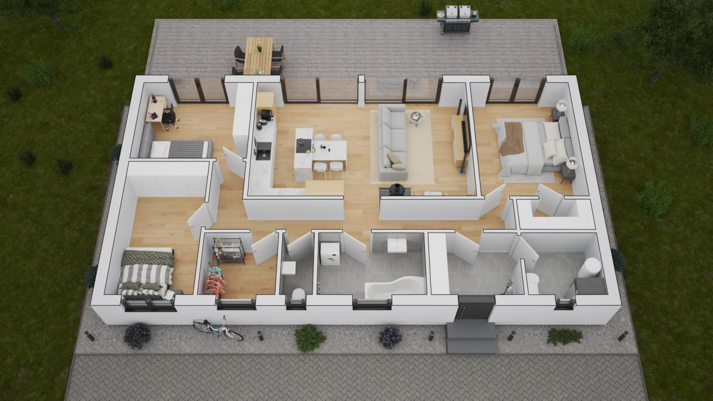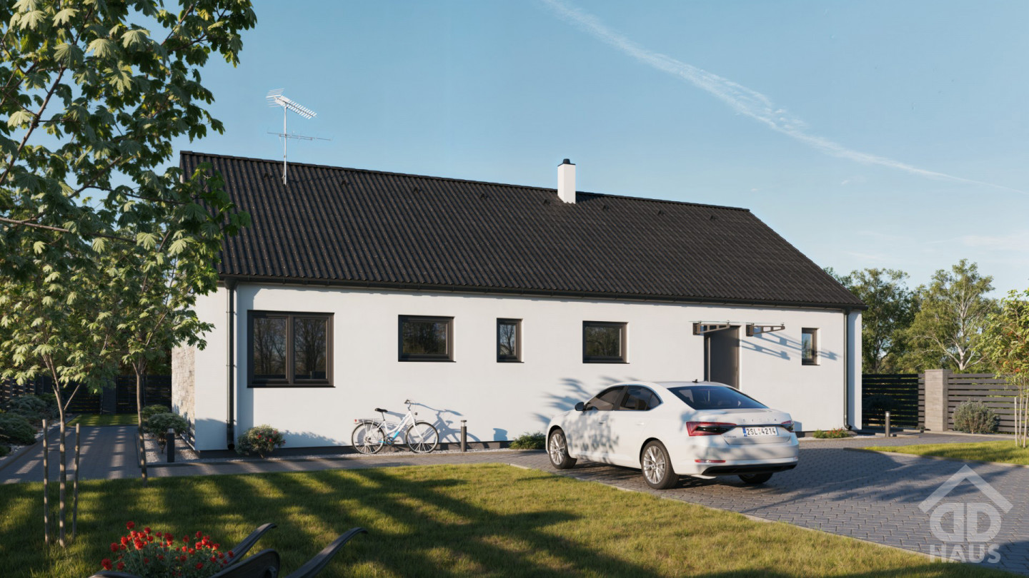Rodinný dům Mcely V. je navržený pro pohodlné bydlení čtyřčlenné rodiny. Díky užitné ploše téměř 98 m² nabízí praktické dispoziční řešení 4+kk s dostatkem prostoru pro každodenní život. Dominantou domu je světlý obývací pokoj s kuchyňským koutem a přímým vstupem na zahradu. V noční části se nachází dvě ložnice, dětský pokoj a koupelna se samostatným WC. Nechybí ani technická místnost a půdní prostor dostupný stahovacími schody. Komfort bydlení zajišťuje podlahové vytápění v celém domě.