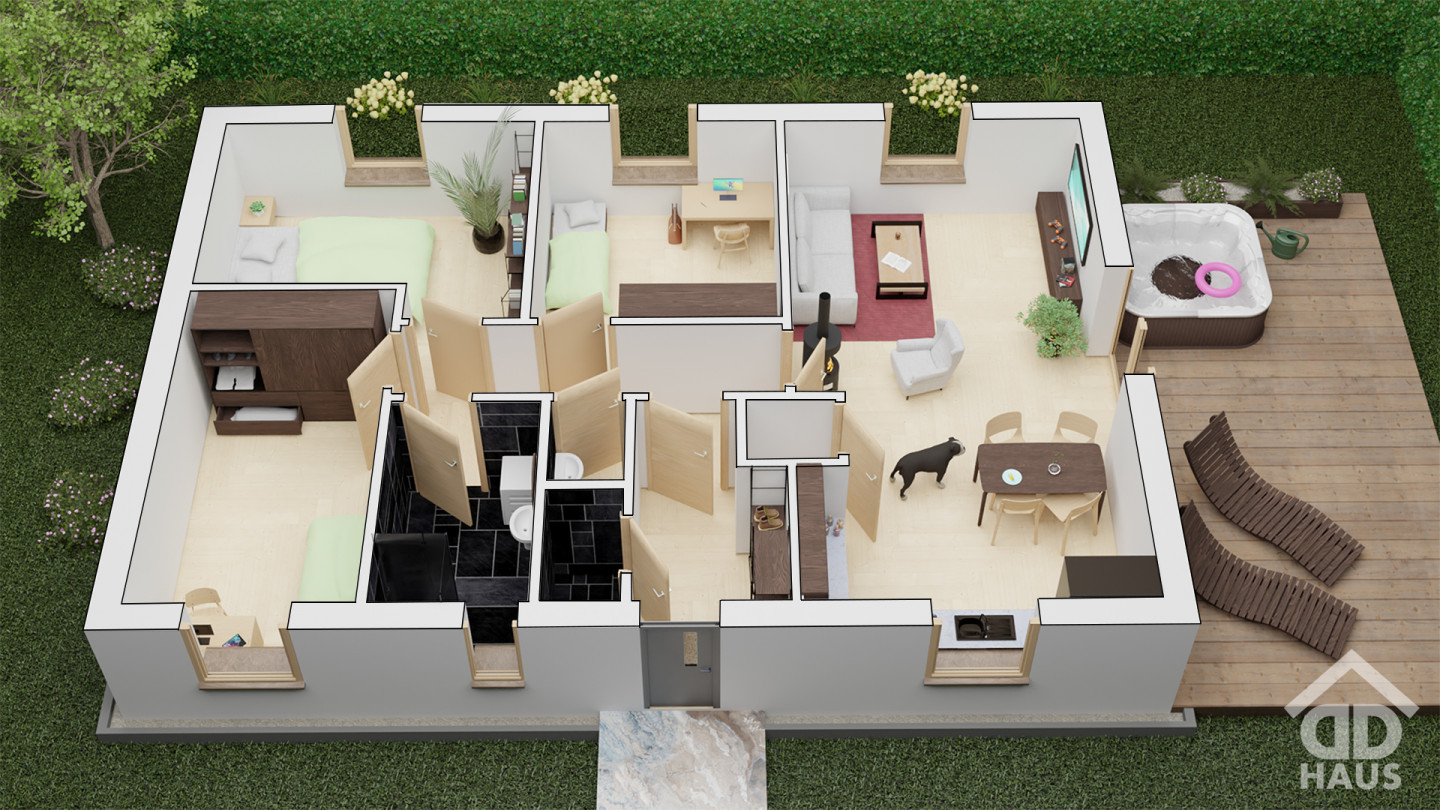 Vyberte si velikost domu, jeho dispozici a případně další nadstandardní vybavení