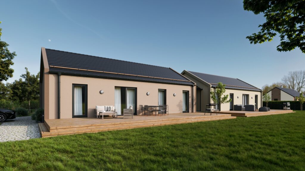 Poté si zvolíte dům z naší nabídky tří zděných domů, nově nabízíme také tři varianty dřevostaveb.